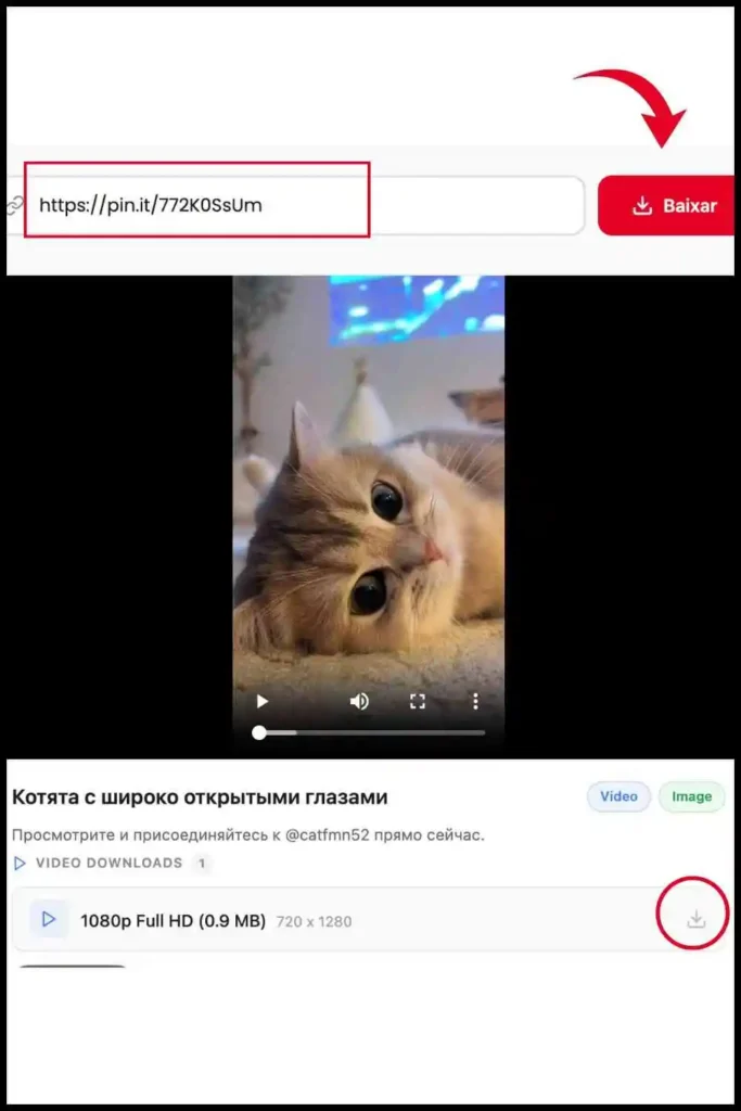 - Cole o link que você copiou do Pinterest anteriormente e clique no botão “baixar” para salvá-lo.